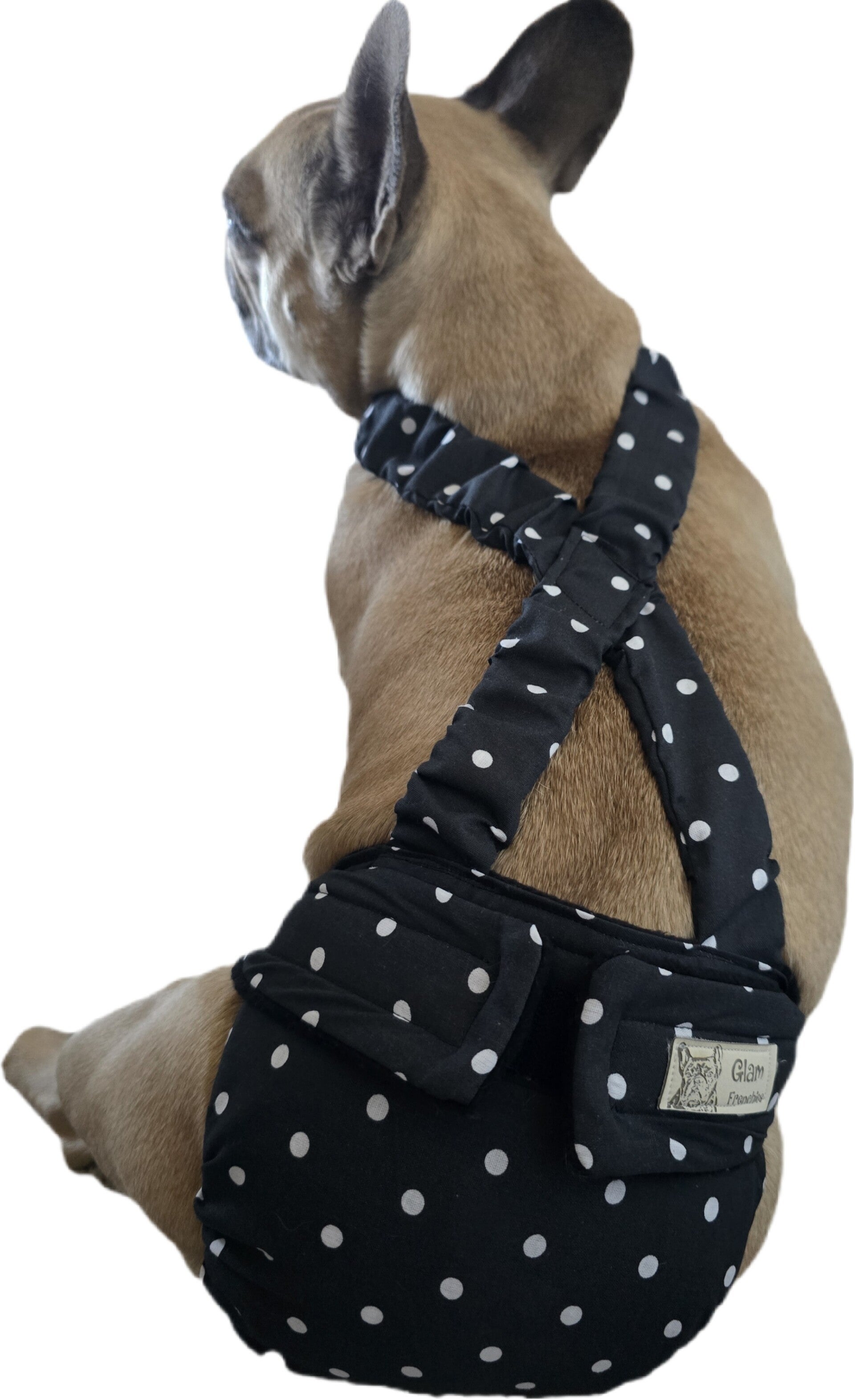 Diese komfortablen Läufigkeitshosen für Französische Bulldoggen mit dehnbaren Trägern ohne Rutenloch fertige ich in liebevoller Handarbeit an. Für den Außenstoff nehme ich Baumwolle und gefüttert sind sie mit Fleece.